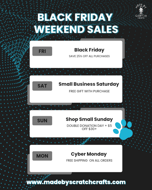 All weekend long, we’ll also be donating a portion of every sale to Ozzi’s Angels, a rescue we proudly support. When you shop with us, you’re not just checking off your holiday list—you’re helping fund vet care, supplies, and safe homes for cats who need a little extra love. Thank you for shopping small and making a difference with your purchase!