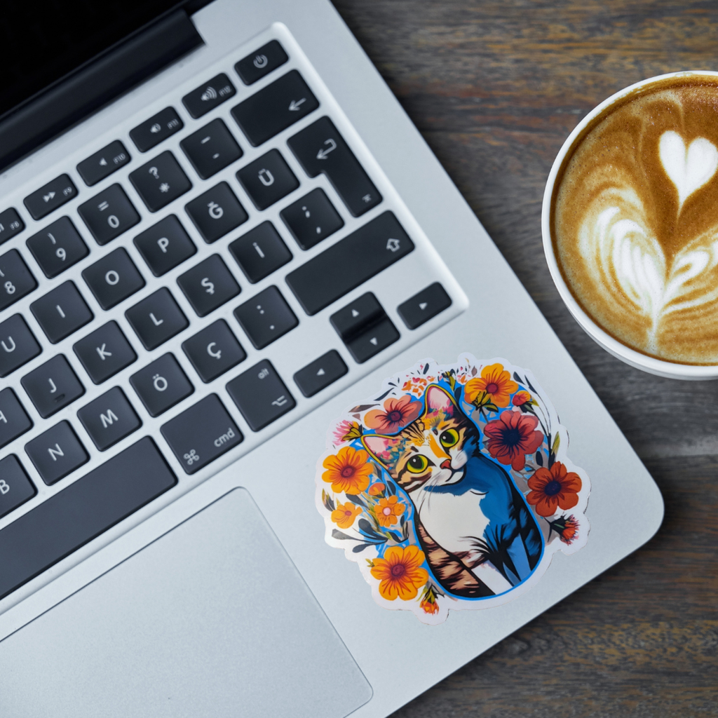 Get ready to add an extra dose of cuteness to your personal items with our delightful Cat in Flowers sticker! Measuring 3" in size, this die-cut vinyl sticker showcases an irresistibly cute cat amidst a charming array of flowers. Designed to withstand water, it's an ideal choice for decorating water bottles, laptops, and journals. Express your love for nature and feline friends with this versatile sticker that will brighten up your day!