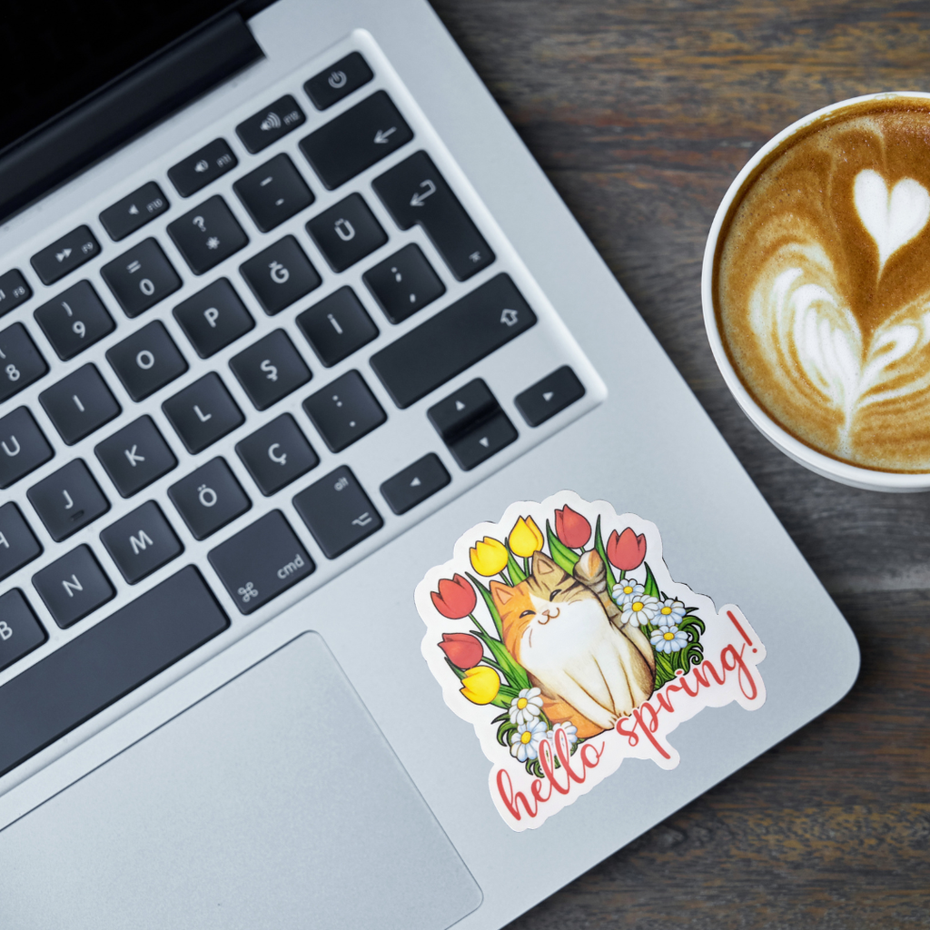 Welcome the season with this sweet Hello Spring cat sticker! Featuring an adorable cat sitting among blooming flowers, this design is perfect for celebrating warmer days, fresh starts, and all things spring. Bright, cheerful, and full of charm, it’s a must-have for cat lovers who adore seasonal décor.