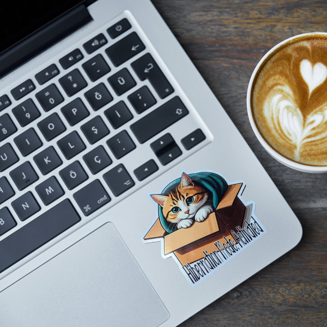 Get cozy with our "Hibernation Mode: Activated" cat sticker! This 3-inch vinyl sticker features an adorable tabby cat snuggled inside a box with a blanket, radiating ultimate lazy-day vibes. Made from durable, weatherproof vinyl, this sticker is perfect for adding a touch of feline charm to your laptop, water bottle, planner, and other surfaces. Whether you're a cat lover or just love the idea of hibernating in style, this sticker makes the perfect addition to your collection. Great for gifting or keeping for yourself!