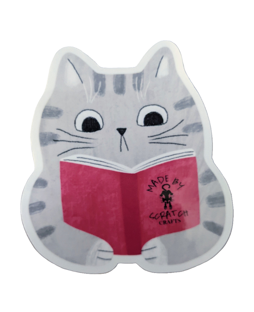 Book lovers - does this look like you? Always have your favorite book in hand? This adorable cat reading sticker is perfect for you! Sticker is approximately 3". Waterproof. Perfect for laptops, water bottles, journals/notebooks and more!
